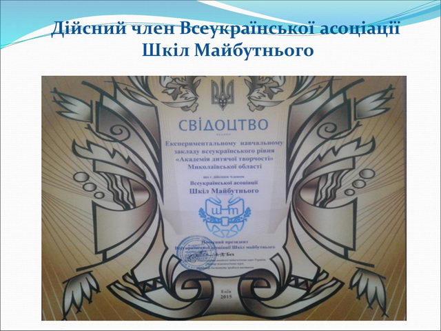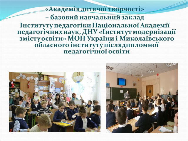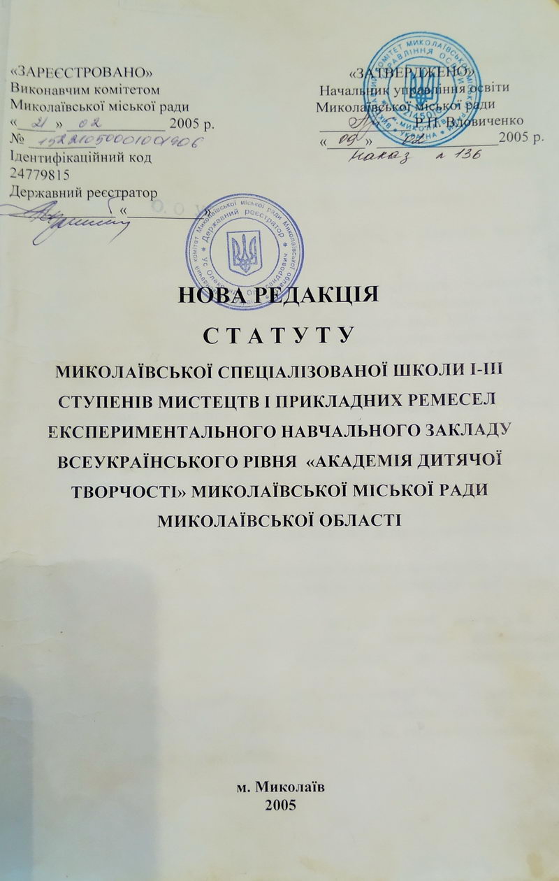 МИКОЛАЇВСЬКИЙ ЛІЦЕЙ «АКАДЕМІЯ ДИТЯЧОЇ ТВОРЧОСТІ» МИКОЛАЇВСЬКОЇ МІСЬКОЇ РАДИ МИКОЛАЇВСЬКОЇ ОБЛАСТІ