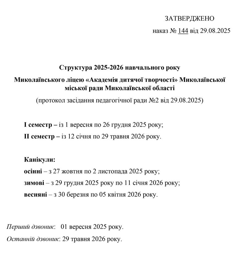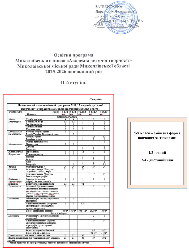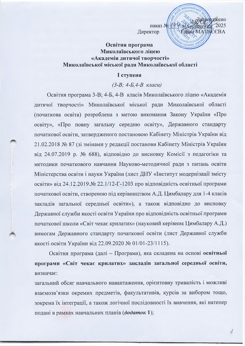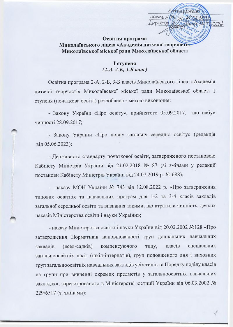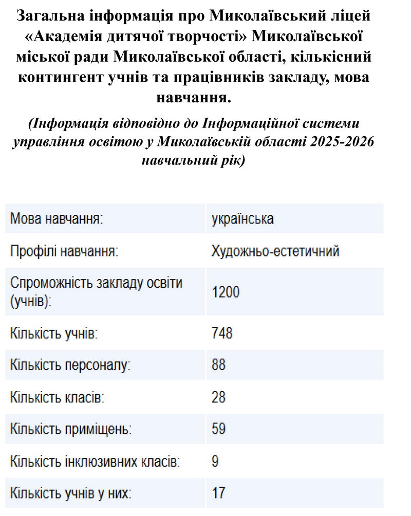 МИКОЛАЇВСЬКИЙ ЛІЦЕЙ «АКАДЕМІЯ ДИТЯЧОЇ ТВОРЧОСТІ» МИКОЛАЇВСЬКОЇ МІСЬКОЇ РАДИ МИКОЛАЇВСЬКОЇ ОБЛАСТІ